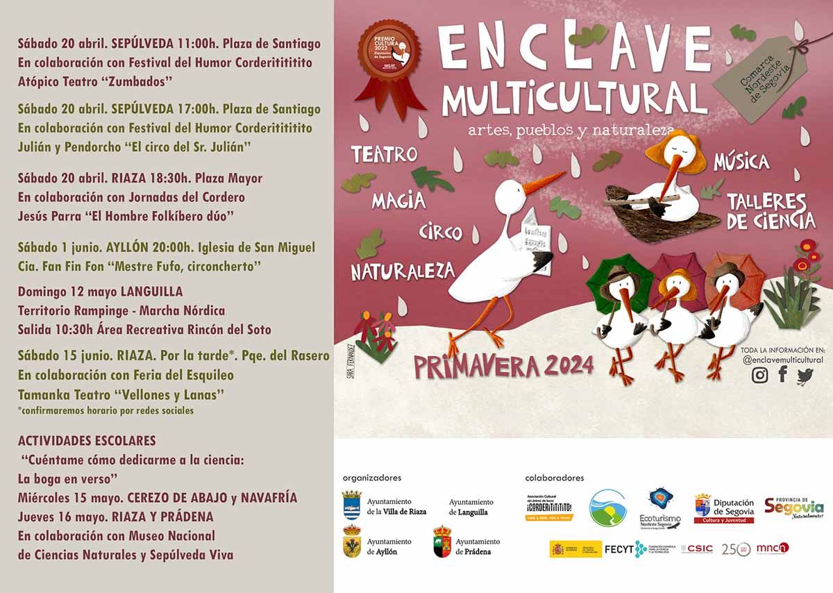 Artes, pueblos y naturaleza para una comarca que sigue mostrándose unida desde las acciones colaborativas que promueve Enclave Multicultural. Éstas se trasladan a las Jornadas Gastronómicas del Cordero Lechal y Feria del Esquileo de Riaza, el Festival del Humor Corderitititito de Sepúlveda, al grupo Ecoturismo Nordeste de Segovia o a los colegios de primaria con el Museo Nacional de Ciencias Naturales de Madrid.