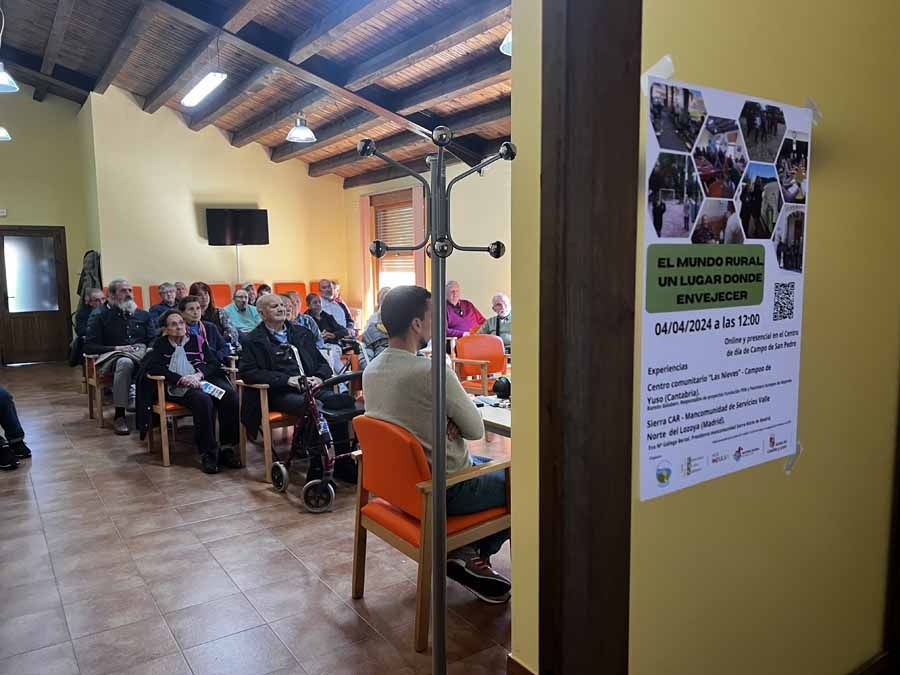El evento, al que asistieron unas cuarenta personas tanto de forma presencial como on-line, contó con la presencia de los responsables de dos experiencias novedosas de otras zonas rurales de España que intentan resolver diferentes problemas a los que se enfrentan las personas mayores que deciden envejecer en sus localidades.