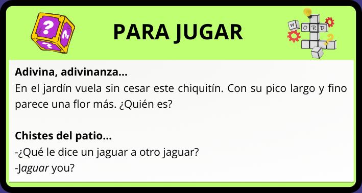 Un poderoso jaguar, extrañado y cansado de la actitud del pequeño colibrí, se dirigió a él de mala manera. - Dónde vas todo el rato, para arriba y para abajo. - Le dijo con tono serio y voz firme.