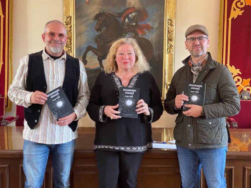 La primera en intervenir fue Irene Michelena, alcaldesa de la villa, que dio la bienvenida a los asistentes y pasó el testigo a los autores. A continuación Pleite presentó al ilustrador de su obra, Ángel Herrera Olías, que dirigió el acto de manera informal, dialogando con Sergio y con el púbico, alternando las preguntas con la lectura de poemas de Desgarradora añoranza.